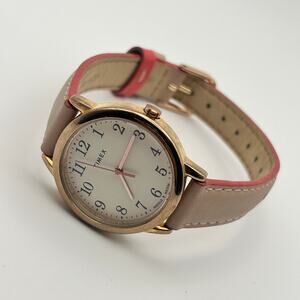 Timex Rose Gold Pink Leather 25mm Women’s Fashion Watch Working New Battery