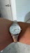 Timex watch with a sleek silver band. Features a white dial with bold numerals.