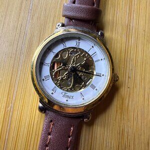 Timex Skeleton Petite Ladies' Watch Brown/Gold/White, 24mm