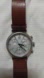 Elegant Timex watch featuring a silver chronograph dial. Paired with a rich brown leather strap.