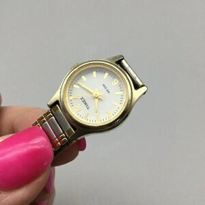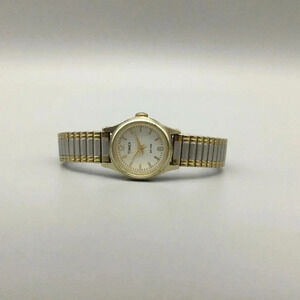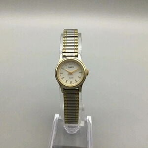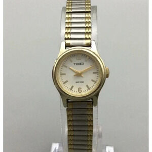 Timex Watch Women Silver Gold Dual Tone Round Stretch Band 30M