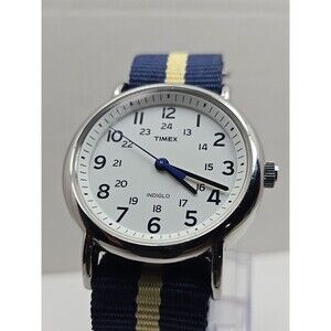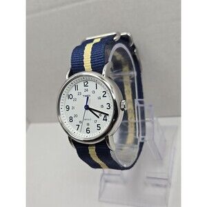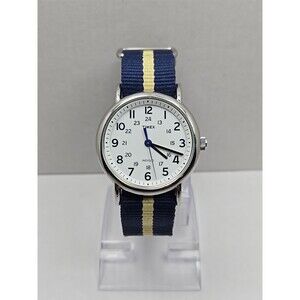 Timex Weekender 38mm Indiglo Watch Blue Yellow Nylon Strap Quartz New Battery