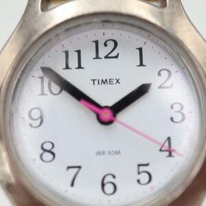 Timex Womens Watch Silver Tone 25mm White Dial Gold Stretch Band w New Battery