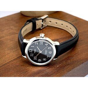 Timex Women's Watch T2N525 Quartz Indiglo Black Dial Leather Strap 25mm