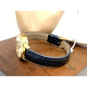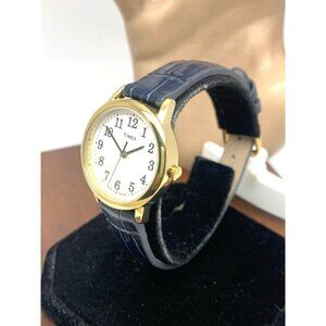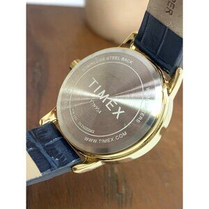 Timex Women's Watch T2N954 Quartz White Dial Blue Leather Strap 30mm Gold Case
