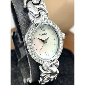 Timex Women's Watch TW2T49700 Quartz Mother of Pearl Dial Silver Steel Oval 19mm (BC9879)