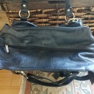 Used twice. Large, stylish, functional diaper bag with tons of pockets for everything. Doesn't look like a diaper bag, goes with everything. Received 2 of these so this one never became my go to. Great gift for an expecting mama. Black with muted brass detailing and tan interior. Easy to clean which is key.