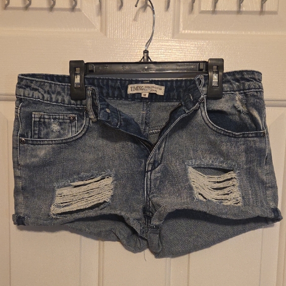 Timing Blue Ripped Denim Shorts