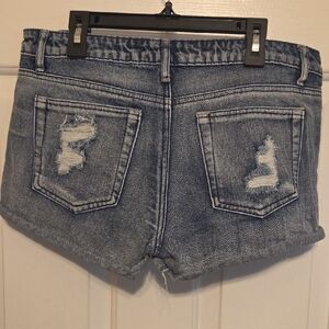 Stylish blue denim shorts with ripped details. Ideal for casual outings.