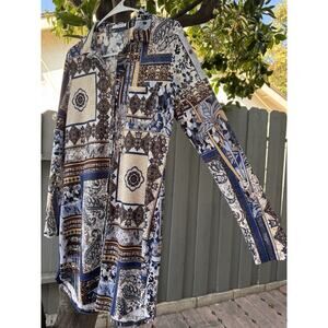 Timing Boho Patchwork Long Sleeve Tunic Button Up - Size L