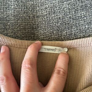 Chic ribbed crop top with button detail. Ideal for casual wear.Timing tan cropped tank top Size L. Worn but still in great condition. Size L but fits smaller. #summer #croptop #buttonup #timing