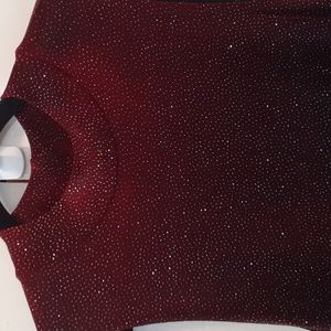 Timing Collection Dark Burgandy red w/ silver & rainbow sparkles, sleeveless, stretch, pull over, turtle round neck top.