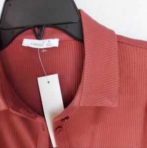 Timing Crop Shirt Womens Brick Medium Long Sleeve Button-Up New Stretch