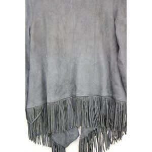 Timing Faux Suede Open Front Fringed Cardigan-Size Small-Boho-Goth