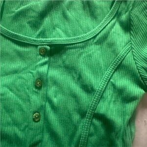 Timing Green Ribbed Button-Up Crop Top