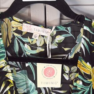 This stylish top from Timing features a relaxed fit with a trendy tie front design. The blouse showcases a striking combination of green and black, perfect for adding a pop of color to your wardrobe. Its cropped length and blouse sleeves make it an ideal choice for a chic, casual look.