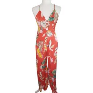 Timing Jumpsuit Tropical Print Thin Adjustable Straps Outer Legs Open Size Large