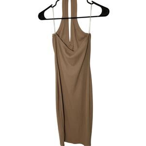 Timing Large New Halter Bodycon Nude Midi SunDress Fitted Preppy Casual Minimal