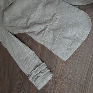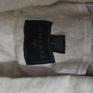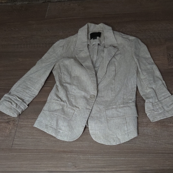 Elevate your style with this chic beige blazer. Perfect for any occasion, it offers a sophisticated look with its tailored fit and classic design. Gently worn size small