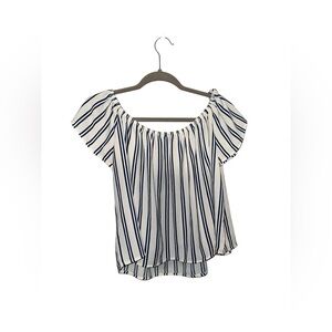 Timing Off Shoulder Blue and White Striped Blouse Size Large