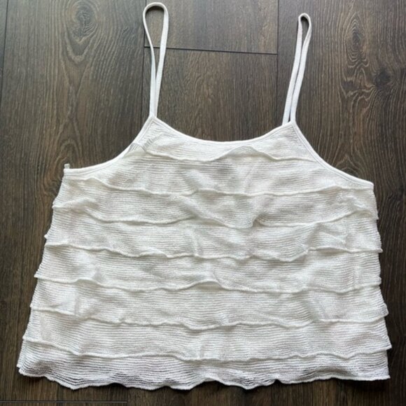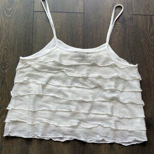 Brand new without tags White tank with sheer layered ruffles and a white lining underneath see measurements
