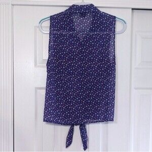 Timing Sheer Shirt Juniors L Large Button Down Sleeveless Blue Retro Floral Top