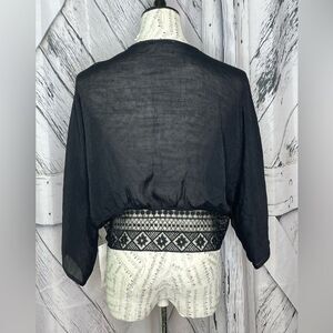Timing Tie Front Top Sheer Lace Trim Black M NWT