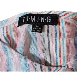 This cute multicolor halter top by Timing is perfect for women who love a pop of color. Featuring front buttons and a halter neck, it's a fun and flirty addition to any wardrobe. Available in medium size.