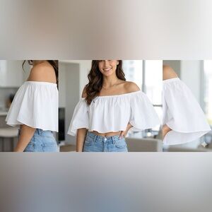 Timing White Ruffled Crop Top