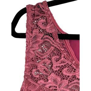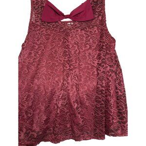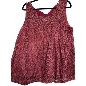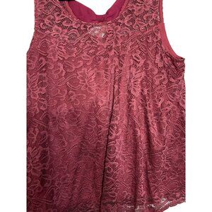 Timing Women Plus Size 2X Lace Sleeveless Top Burgundy Lace w/ Lining Open Back