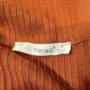 Women's Long sleeve corset style knit crop top from Timing in Cognac.