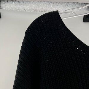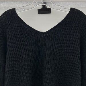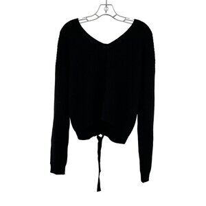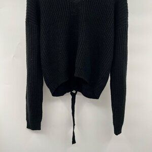 Timing Women's Knit Sweater V-Neck Lace Up Back Black Size Medium