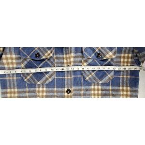 Timing Wool Blend Flannel Shirt Large Brown Blue Plaid Grunge Hipster Festival