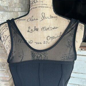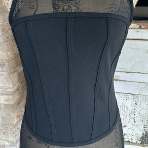 NWT Timing brand black bodysuit w mesh back and mesh straps. Snap closure. Size L.