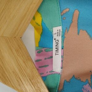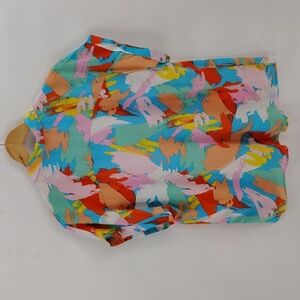 Timing blouse size large multicolor splash look print short sleeve v neck