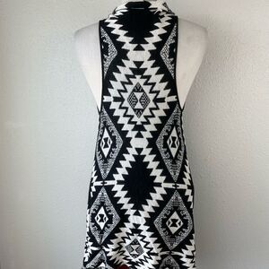 Love this stylish light weight sleeveless cardigan top by Timing. It measures 16 inches armpit to armpit laying flat and closed. It is 34 inches in length from shoulder to hem.