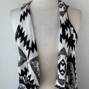 Love this stylish light weight sleeveless cardigan top by Timing. It measures 16 inches armpit to armpit laying flat and closed. It is 34 inches in length from shoulder to hem.