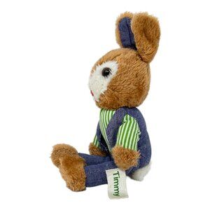 Timmy Bunny Plush Stuffed Animal Toy Green Striped Shirt Blue Overalls Vintage