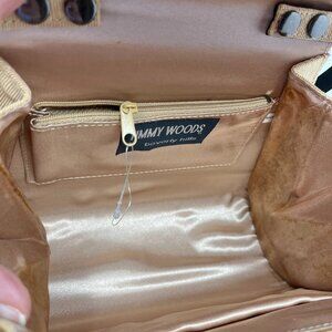 Timmy Woods Beverly Hills Purse Gold Textured w/High Relief Pearl Embroidery