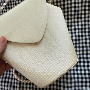Magnetic envelope style closure. Long crossbody handle as well as dainty crystal handle for hand carry.