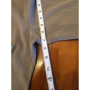 This blouse tells a story of creativity and elegance, featuring layered pleated sleeves that add a touch of whimsy. Its intricate embroidery dances across the soft gray fabric, blending art and fashion seamlessly. Pre-loved and in excellent condition, it's a unique piece for those who appreciate both style and individuality.