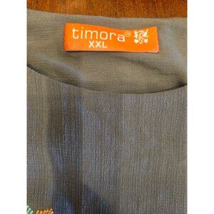 Timorra Artsy Gray Blouse With Layered Pleated Sleeves & Vibrant Embroidery XXL