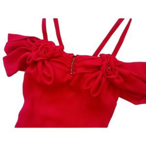 Tim's Paris 90s Red Formal Sheer Holiday Party Rhinestones Flowers Dress Small