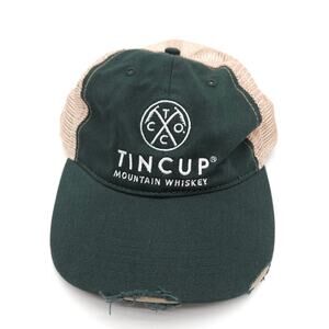Tin Cup Mountain Whiskey Snapback Mesh Distressed Hat Ball Dad Cap Green