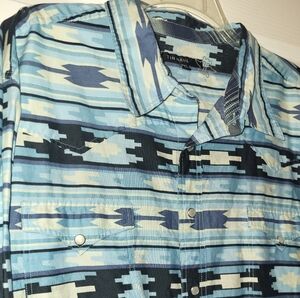 Tin Haul Men's Snap Button Up Shirt Size 3XL Southwestern Print Blue
