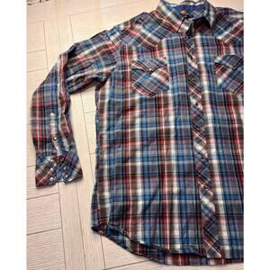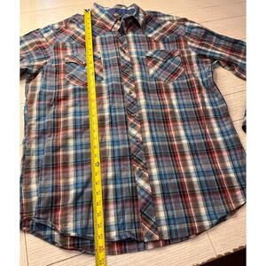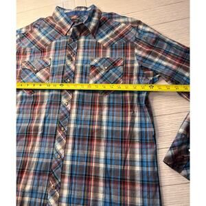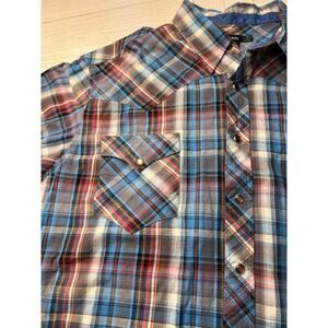 Tin Haul men's pearl snap button down plaid western style shirt. Long sleeve. XL. Vintage. Blue & red.