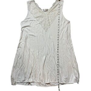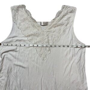 A vintage-inspired ivory nightgown featuring delicate lace trim. The sleeveless design offers comfort, while the lace adds an elegant touch. Ideal for those who appreciate classic sleepwear.
