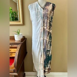 Tina + Jo Anthropologie Tie Dye Maxi Shirt Dress Button Front Duster Vest Size S