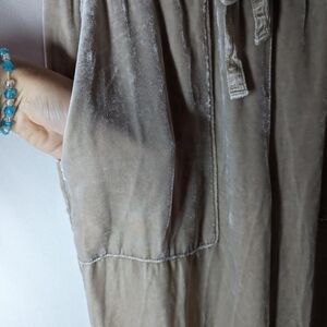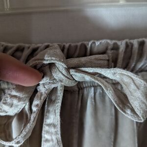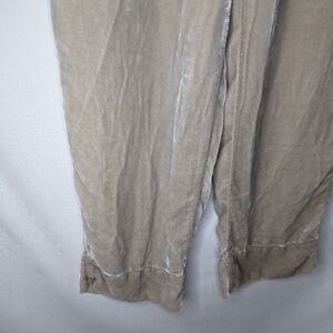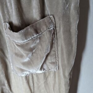 Anthropologie Tina Joy tan/cream crushed velvet pants with elastic waist and drawstring closure, 3 pockets. size small