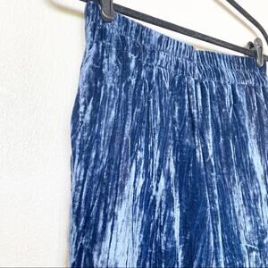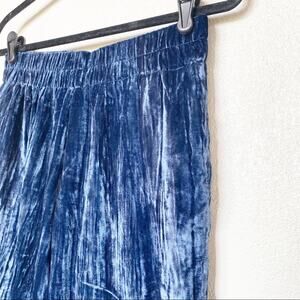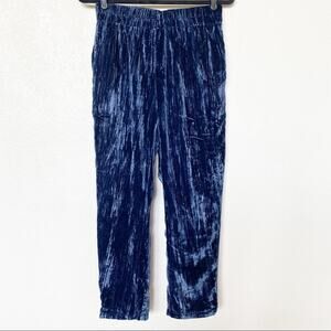 Tina + Jo Josephine crushed velvet tapered trouser in navy. Size XS. Get the look of formal wear with the feel of sweatpants with these velvet trousers. Elasticized waist, pockets at the hips. Pull on style. New with tags.